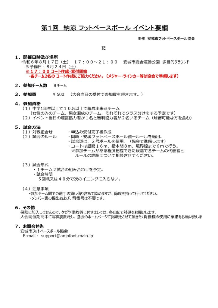 猛暑日が続きますが、夕涼みのなかフットベースボールを楽しみましょう!