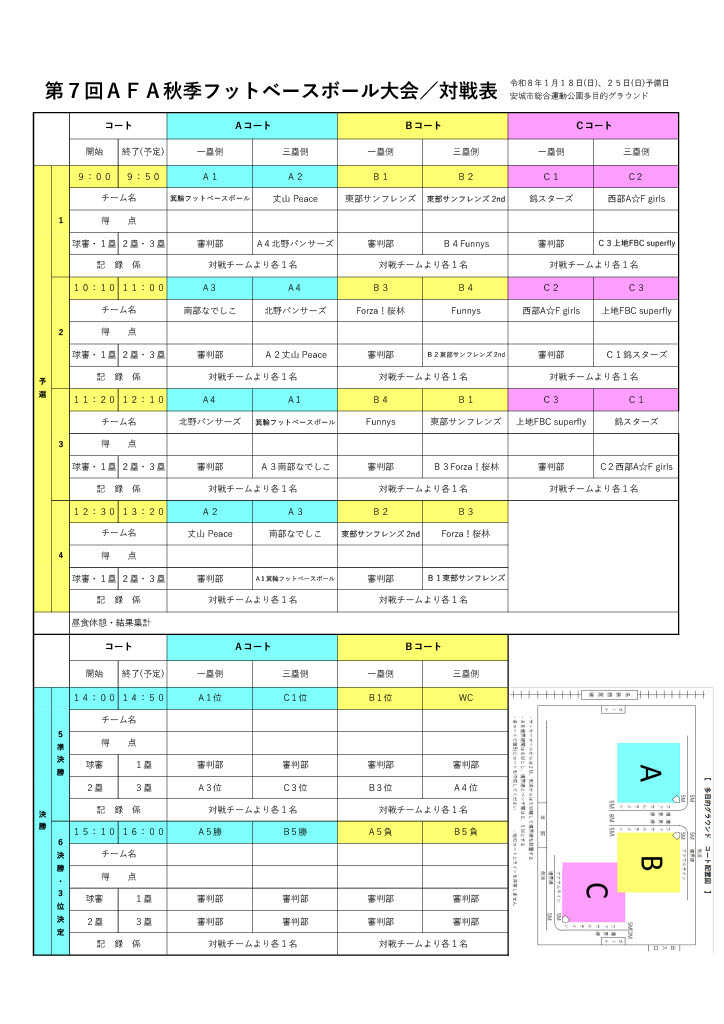第7回 AFA秋季フットベースボール大会(組み合わせ抽選結果)