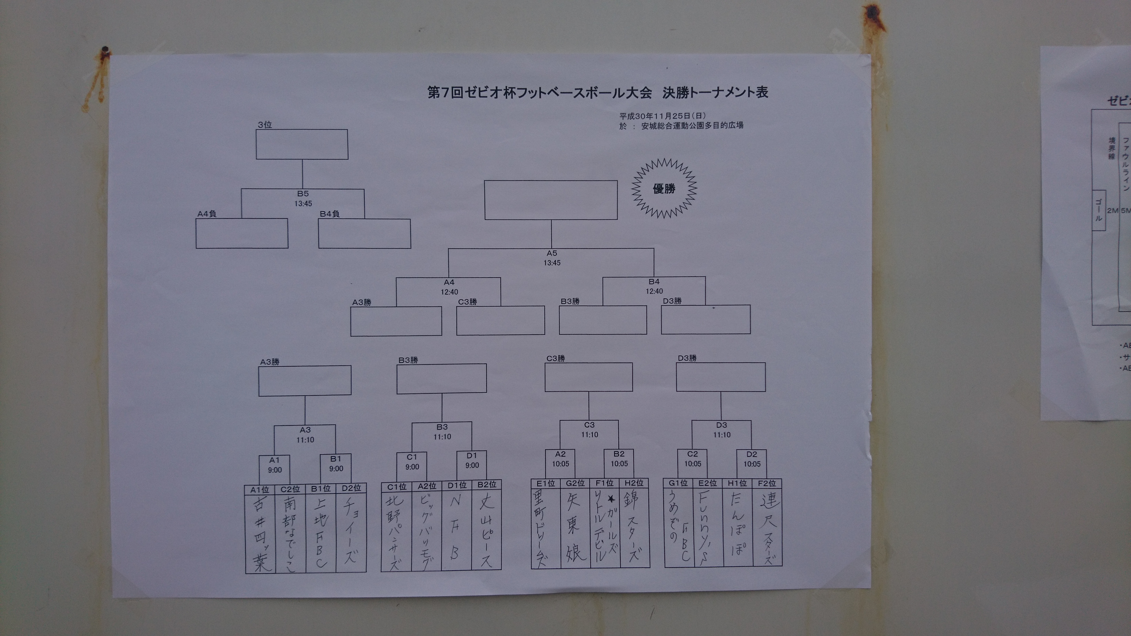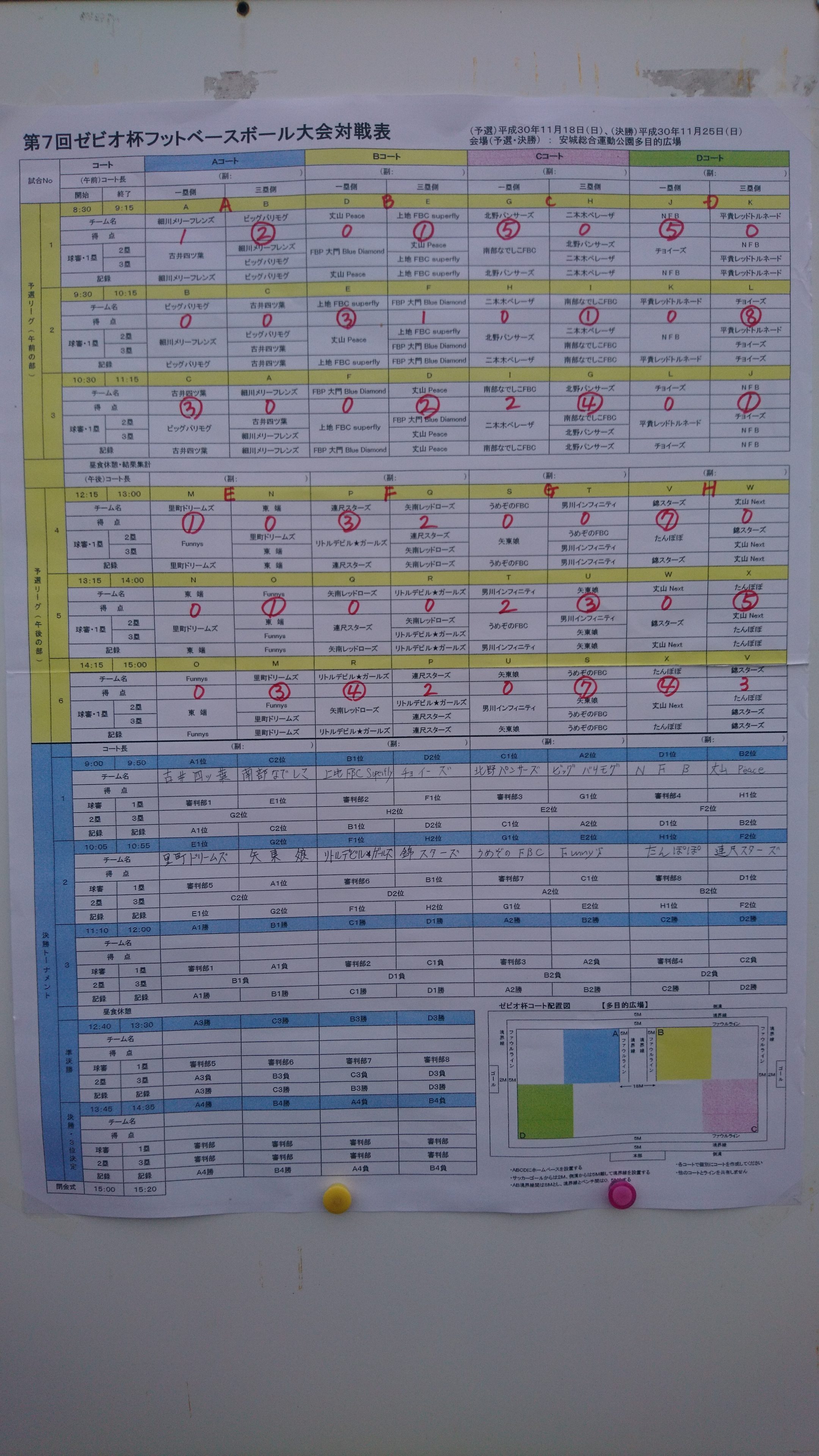 予選リーグの結果と11/25(日)開催の決勝戦のトーナメント表を掲載しましたので関係者の方はご確認をお願いします。